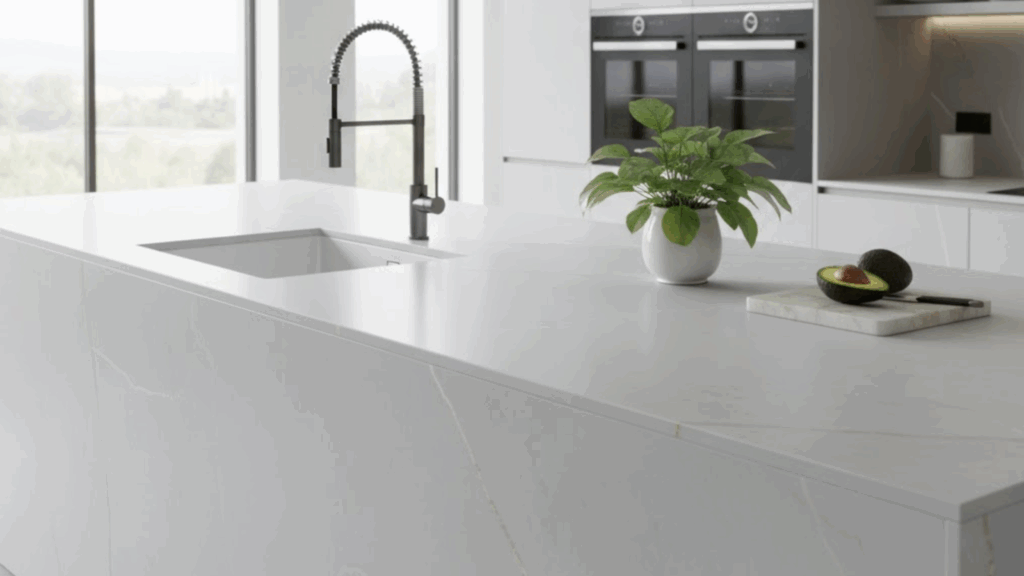 Porcelain countertops are non-porous, antimicrobial, and food-safe, offering excellent stain resistance. They are harder than quartz and can withstand high temperatures, ensuring durability and practicality